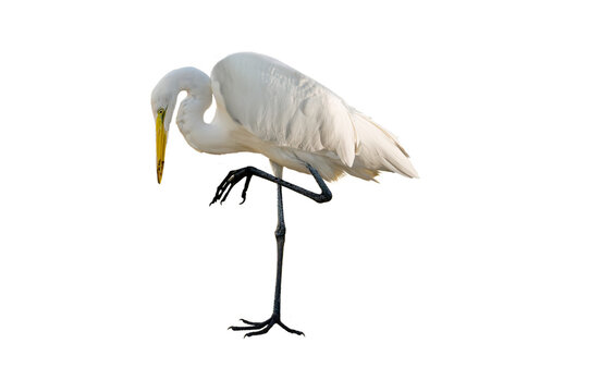 Majestic white egret with orange beak stands in marsh grass great egret white bird
