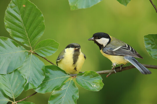 Parus major. The nest of the Great Tit in nature. baby great tit gathering in the nest