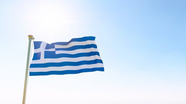 Greece Waving Flag on light blue sky summer background, Independence Day