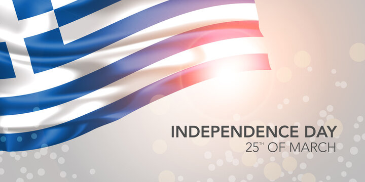 Sketchy style illustration for greek independence day with a waving flag and a background of iconic greek scenery.