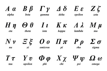 Greek alphabet letters. Education. Science. School. Vector illustration