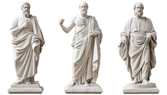3d render illustration artwork of ancient greek female goddess Athena holding spartan helmet marble stone statue in different angles isolated on white background.