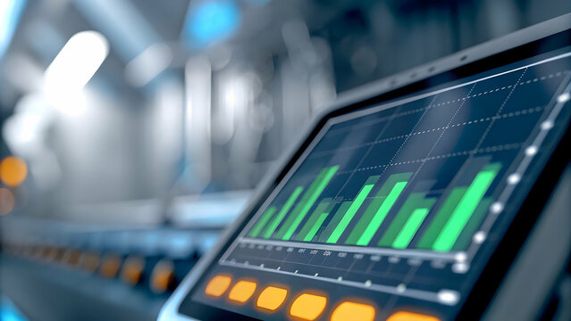 Close up of eco friendly financial dashboard with green analytics on laptop screen concept as Close up of laptop screen displaying eco friendly financial dashboard with green analytics symbolizing dig