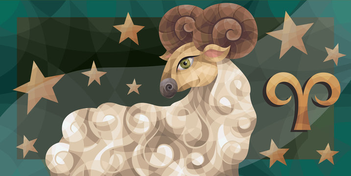 Mystical aries zodiac sign with cosmic background