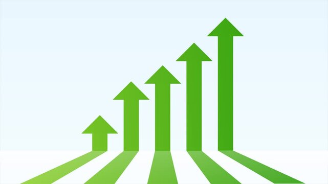 Animated glowing green arrows moving upward on a black background. Futuristic digital animation symbolizing growth, progress, success, and financial rise. Perfect for business and tech visuals