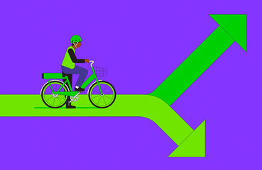 Cyclist on electric bike facing choice of green arrows