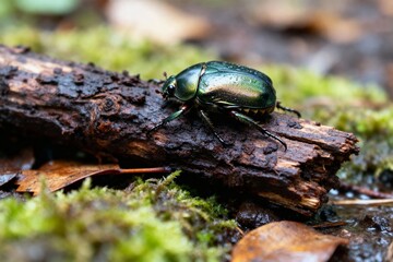 Detailed Photo of Isolated Green Beetle Insect with Shiny Shell on Transparent Background