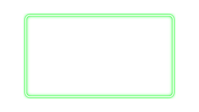 Green rectangular frame with neon glow. Neon effect green border. Neon glow green rectangle for picture or video frame. Vector illustration.