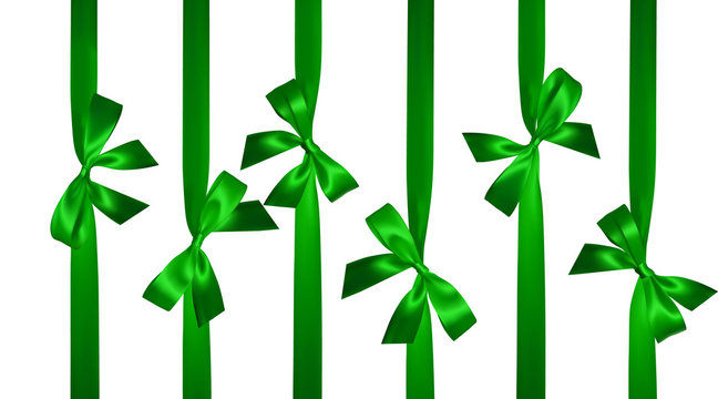 Realistic satin green bow knot on ribbon. Vector illustration icon isolated.