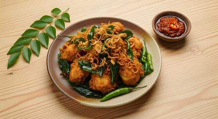 Spicy Korean Fried Chicken with Pickled Red Onions and Green Chilies