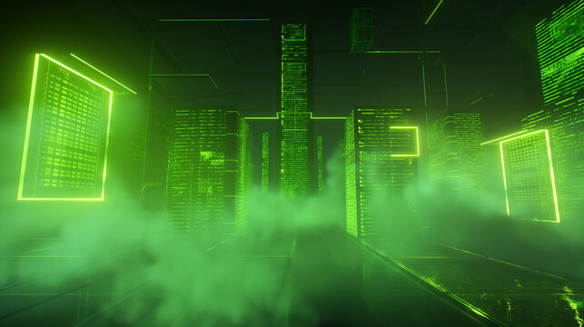 Goals Arrow on a road leading to a coding IT internet City with green coding background.