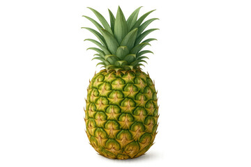 A ripe pineapple with its rough, textured skin and spiky green crown, Each pineapple’s vibrant color and subtle imperfections captured with precision