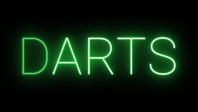 Flickering neon green Darts sign animated on black background.