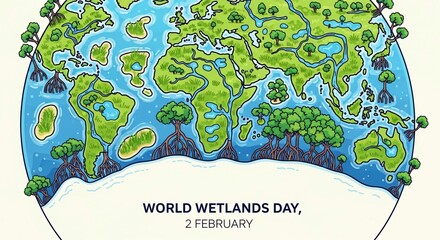 World Wetlands Day: A vivid illustration of the Earth, symbolizing the importance of wetlands and environmental preservation. Capturing the essence of ecological balance and global awareness.