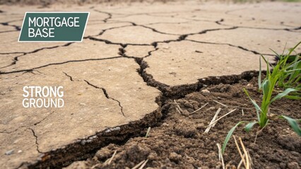 Dry Cracked Earth With Green Grass, Symbolizing Resilience and Nature's Struggle in Arid Environments