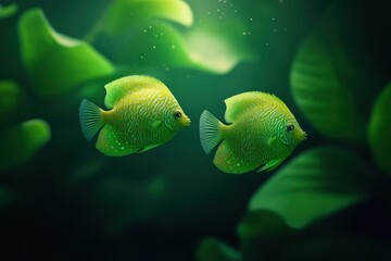Close up of a green fish swimming underwater with its mouth open surrounded by bubbles in water green screen animal video