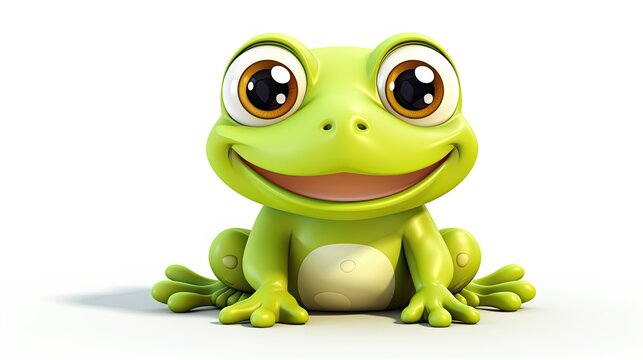 Plush green frog toy with black eyes and smile sitting on a white surface