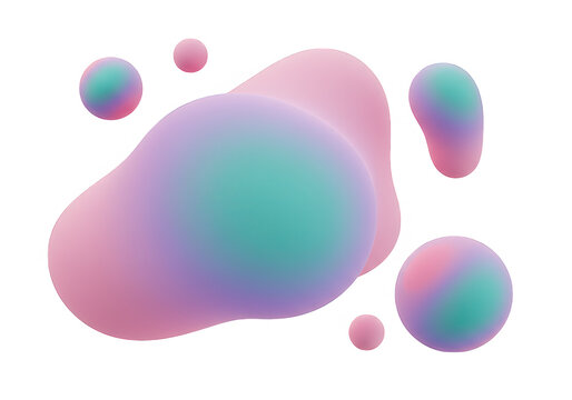 Abstract pastelcolored fluid shapes in pink, purple, and green gradients, isolated on transparent background