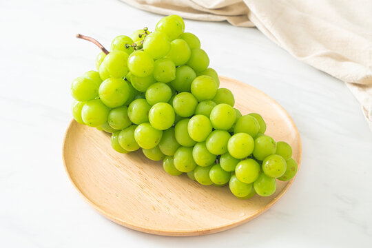 fresh green grape on wood plate