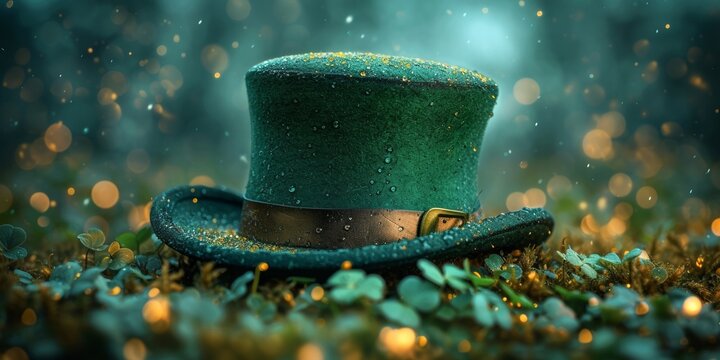 Powerful lion with green hat celebrating Saint Patrick day on blurred background. Generative AI