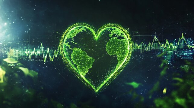 Business and economic future with a green heartbeat pulse, The importance of renewable and sustainable energy. Generative AI