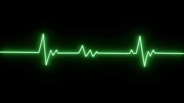 Vibrant green heartbeat line against a stark black backdrop, symbolizing life, health, and the rhythm of existence in a modern,