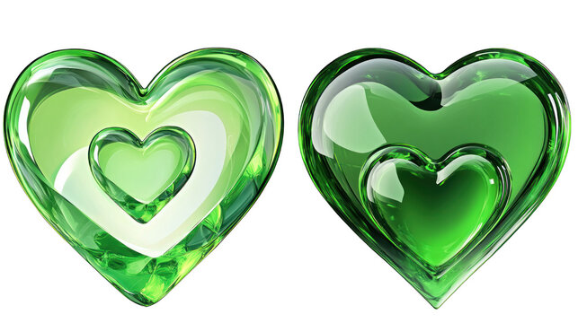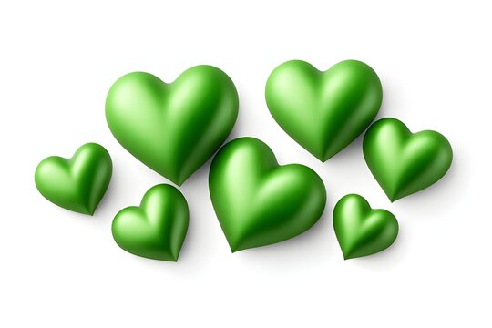 Beautiful colorful green hearts for Valentine's Day and Kissing Day in clouds of green tones