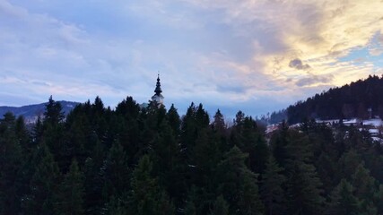 Sunlit window with flowing curtains overlooking peaceful green hill. Concept of calm home retreat