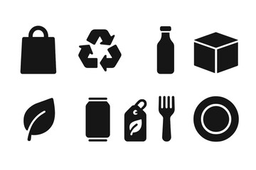 Eco-friendly, recycling silhouette icon set. Sustainability and green icons collection