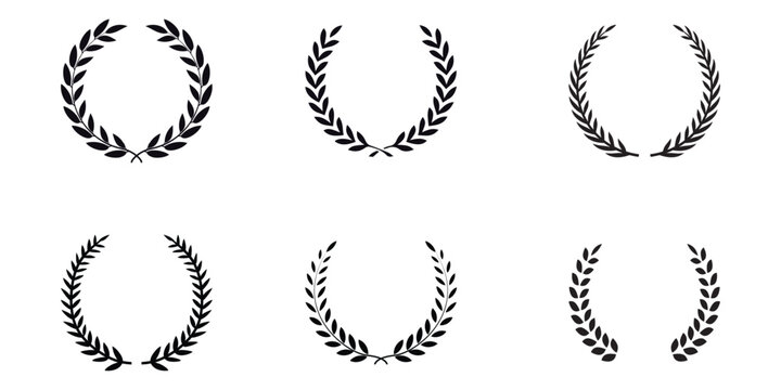Icon of a triumph laurel. Set silhouette wreaths made of wheat, oak, and laurel leaves that represent an honor, a feat, or nobility. Greek floral branch emblem