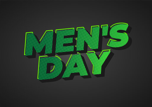 A vibrant graphic design featuring the text Mens Day in bold, green letters with dotted texture and shadow effect on a dark background.
