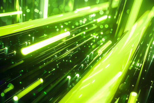 Green lights form a futuristic network, symbolizing digital data flowing through cyberspace.