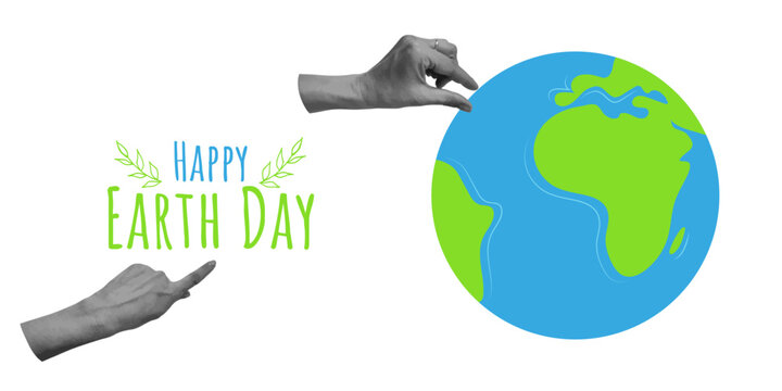 Earth Day World Environment Nature Planet Collage. World maps lush nature scenes and our blue planet. For eco-campaigns web banners posters or green marketing visuals. Vector illustration.