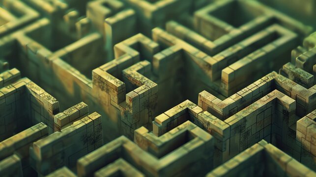Abstract green maze design with intricate pathways and three-dimensional structure.