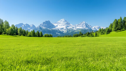 A stunning stock photo featuring a vibrant and lush spring landscape, with a picturesque backdrop of blooming flowers, green meadows, and clear blue skies.