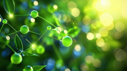 A close-up view of green molecules on a vibrant green background, symbolizing biology and microscopic life forms.
