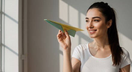Flight paper plane following to path on green screen. Loop 3d animation for game, business concept art.
