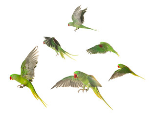 Contemporary abstract artwork double exposure of green parrot and forest landscape design, concept of animal and natural wilderness adventure. Superb Generative AI.