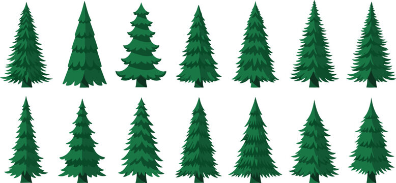 3d rendering of cartoon fir tree.Simple green pine tree with shadow isolated on white background. Set of stylized coniferous.