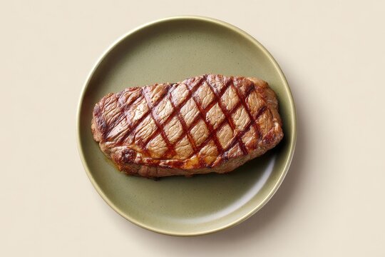 Empty flat grayish green plate for placing any foods, isolated on white background with clipping path. The image was shot at a 30-degree hero angle.