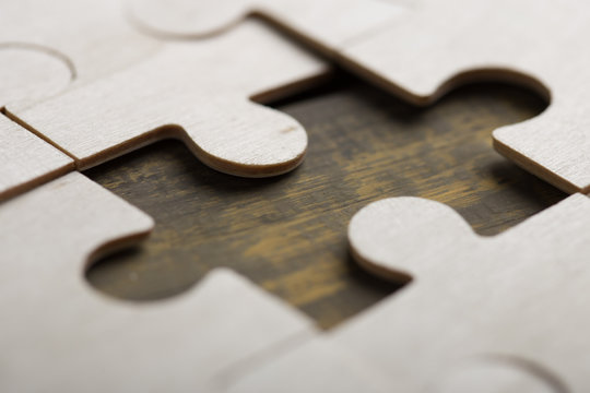 Two hands holding two puzzle pieces together, symbolizing connection, teamwork, and collaboration.