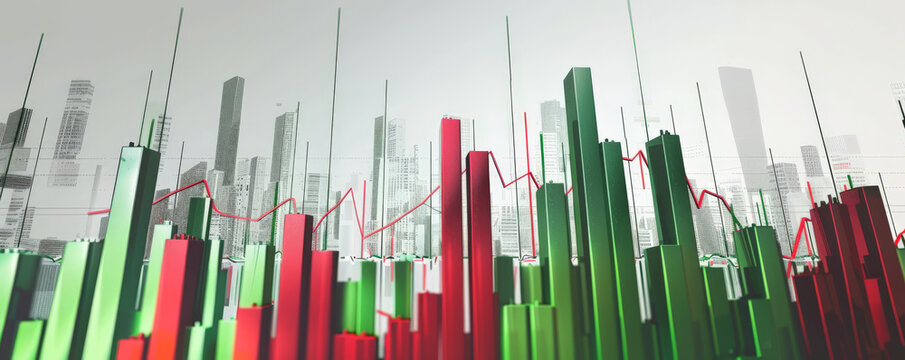 Stock graph background with green and red candlestick chart showing financial data trends