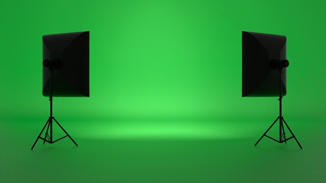 Attractive young businesswoman dancing in the studio while holding a black umbrella. Shot in 4k resolution with green screen background