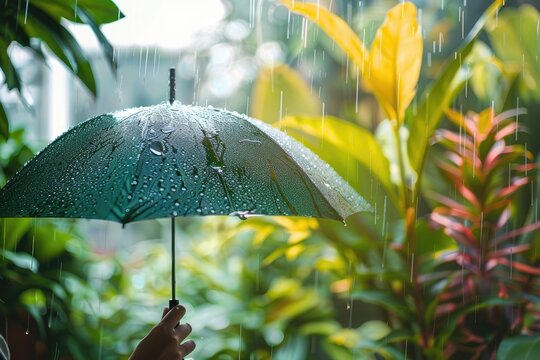 A glowing umbrella on a green screen, representing protection, shelter, and safety. Ideal for futuristic, artistic, and creative projects requiring sleek, vibrant, and interactive visual themes.