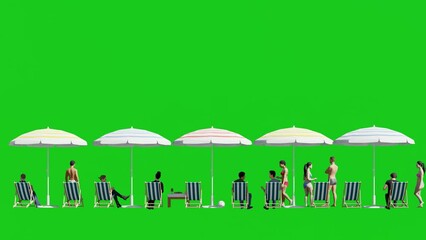 Isolated Group of People Sitting on Chair,3d Animation people on the Beach Green Screen Chroma key