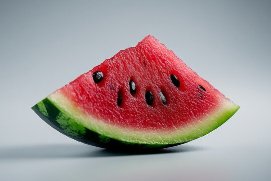 A minimalist depiction of a watermelon slice, with soft, abstract red and green shapes and black seeds