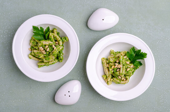 Traditional pasta with green sauce