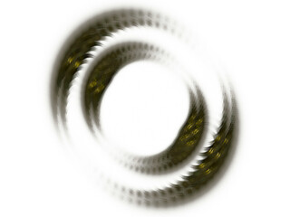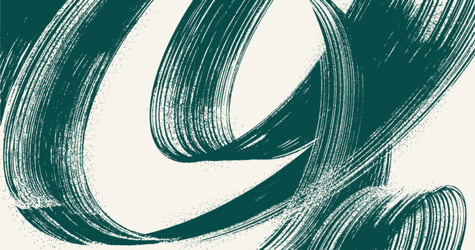 Grainy green spiral dry brush stroke with spray texture. Hand drawn fine splashes distress damaged edge banner with spiral bold line. Grainy vector brush strokes texture with scattered tiny dots.