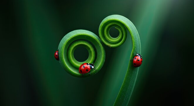 Delicate balance ladybugs on green spirals nature's wonders and peaceful coexistence