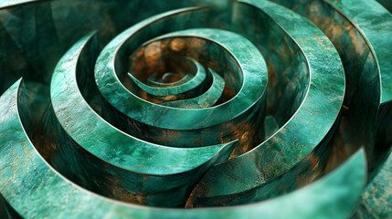 A set of overlapping green spirals with a metallic finish.